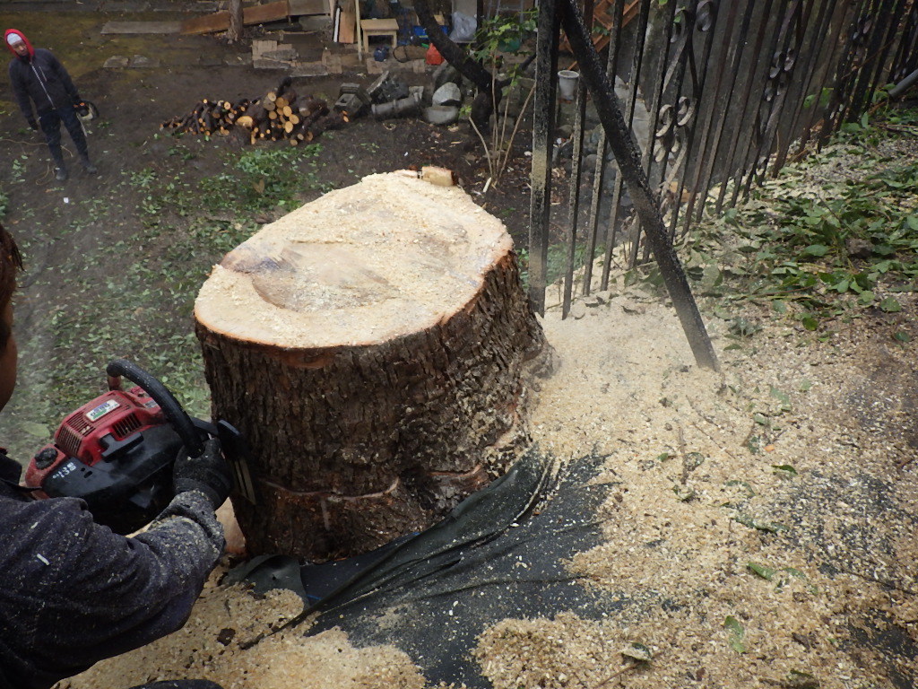 ある程度の大きさにカットしたところで、根元から切り倒します。