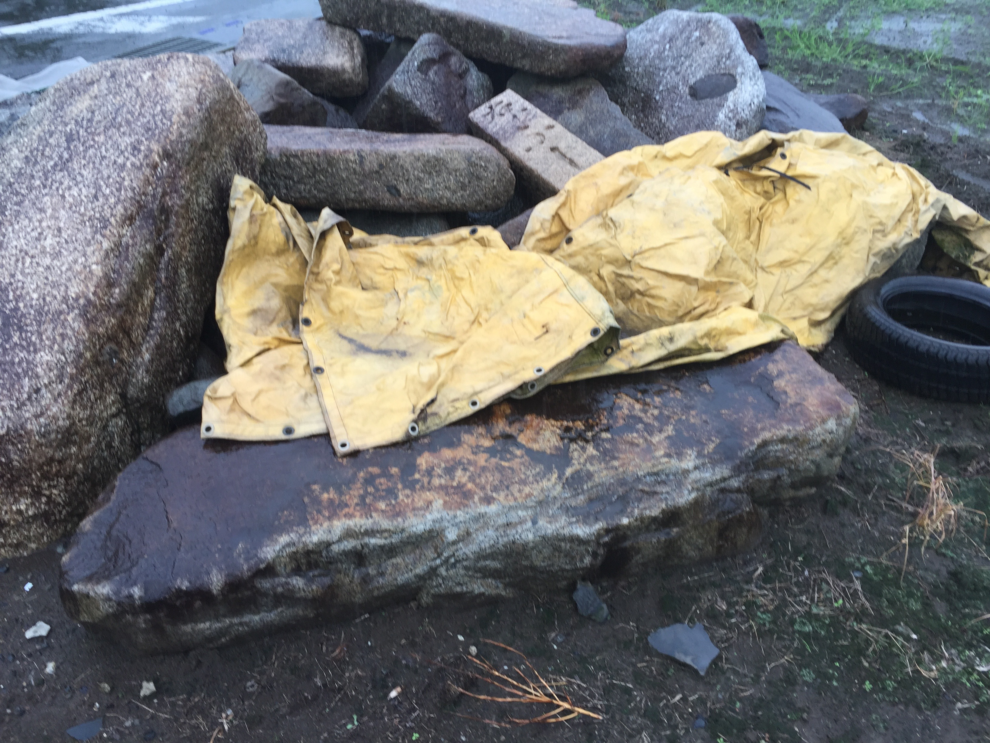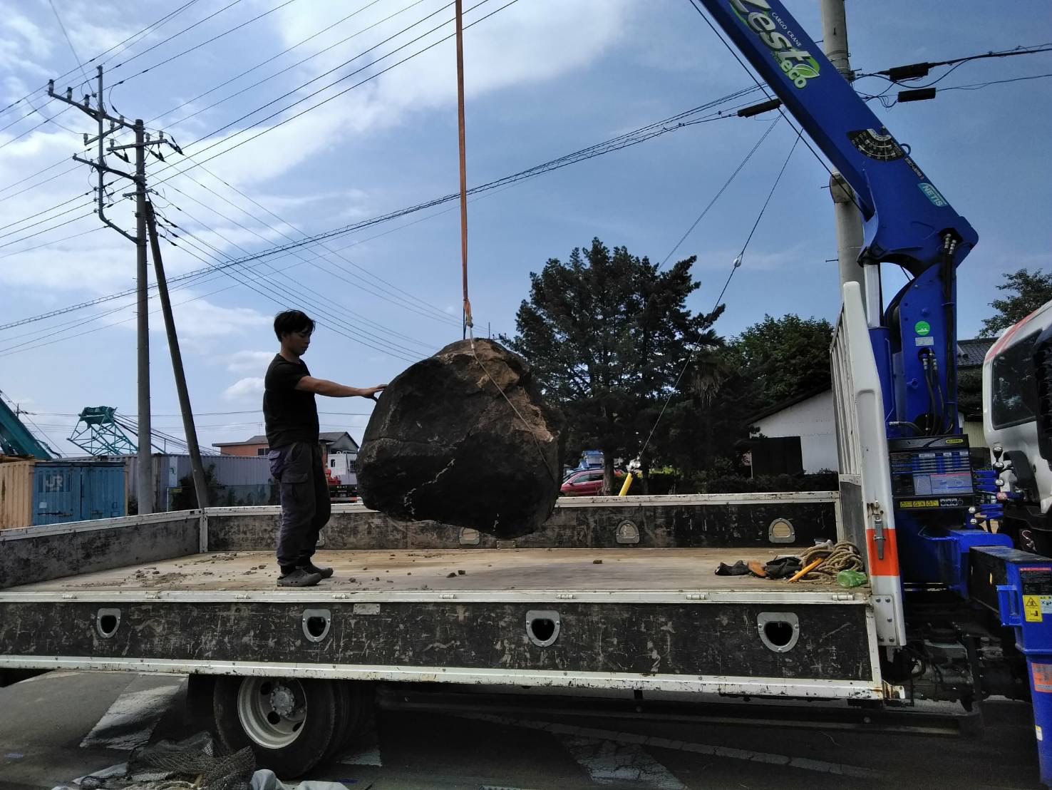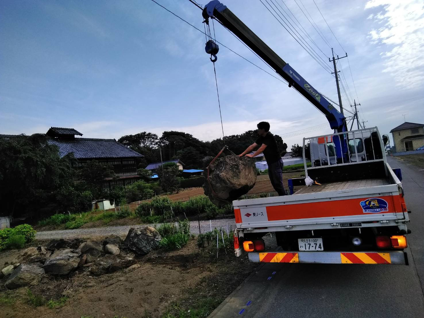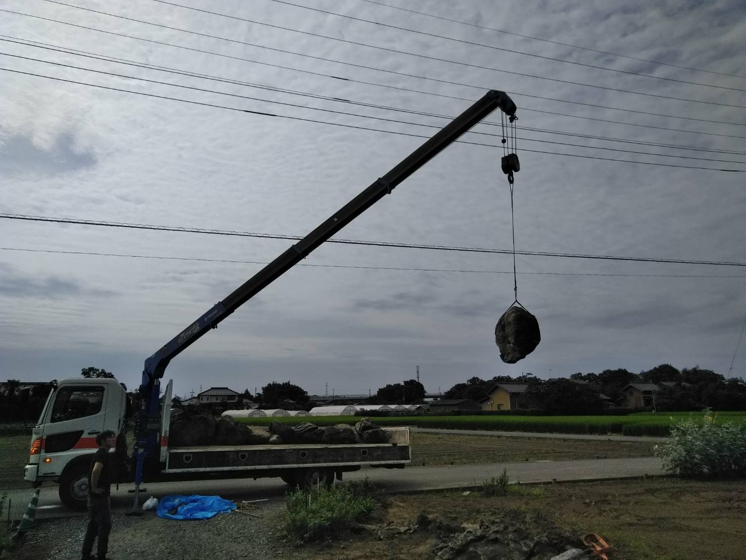 石の撤去風景。