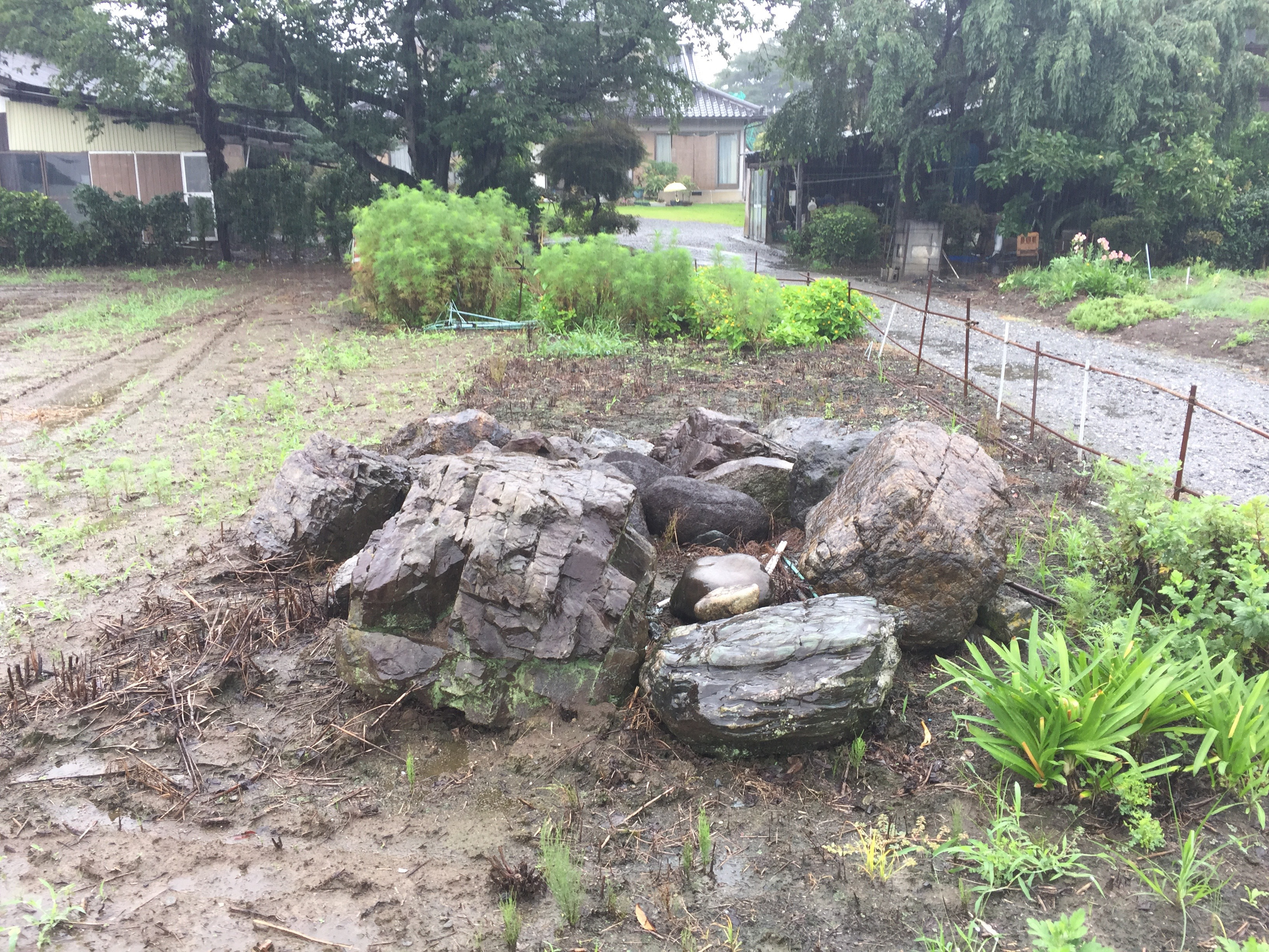 撤去する庭石。
