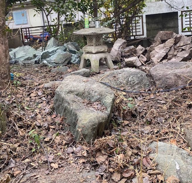 移動後の庭石(蹲)