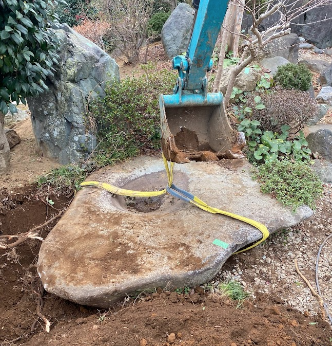 庭石撤去 横浜市港南区|重機不可人力搬出