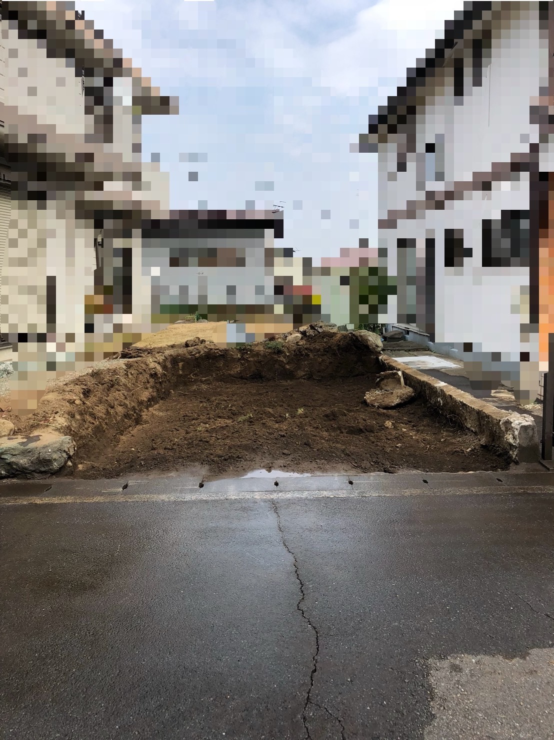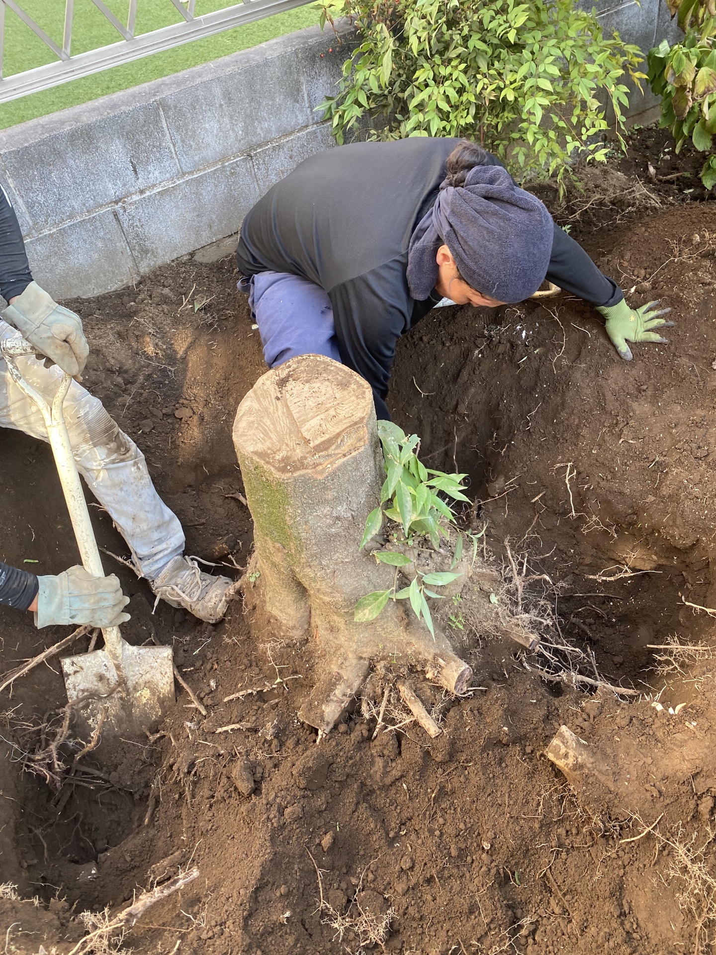 周りを住宅に囲まれたお庭の為、重機を使わずに人力で庭石を割り、搬出。