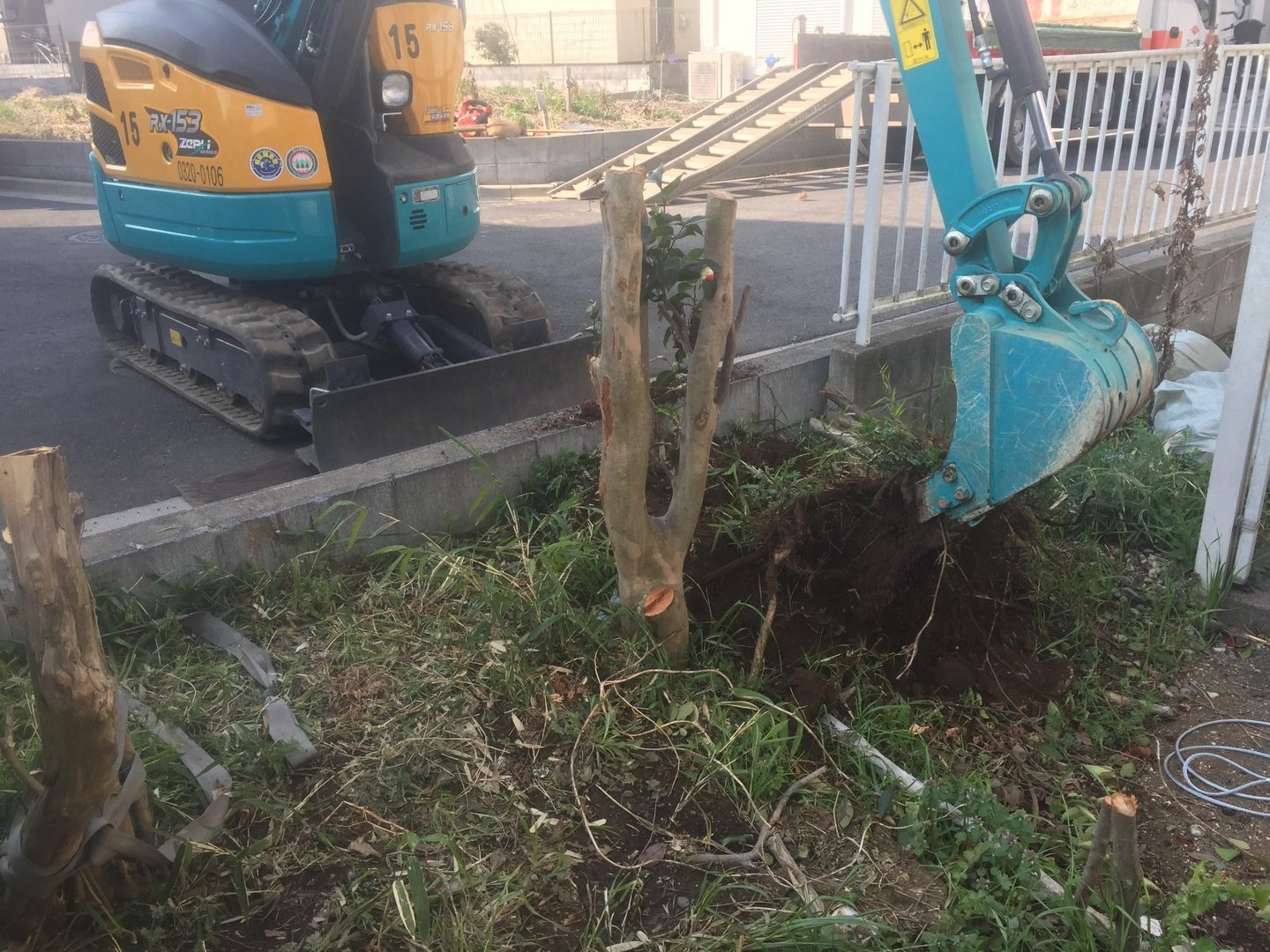 庭の解体では、単に木を切るだけでなく、地中に残る根や石を取り除く作業が重要になります。