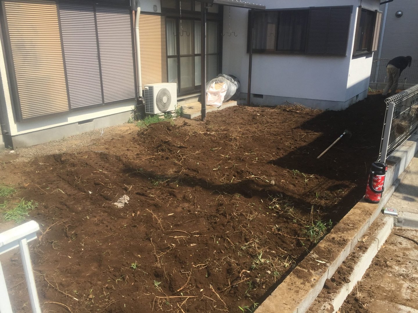 そのため、重機を使用して根をしっかり掘り起こし、庭全体を整地しました。