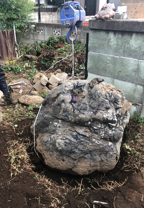 庭石撤去 横浜市港南区|重機不可人力搬出