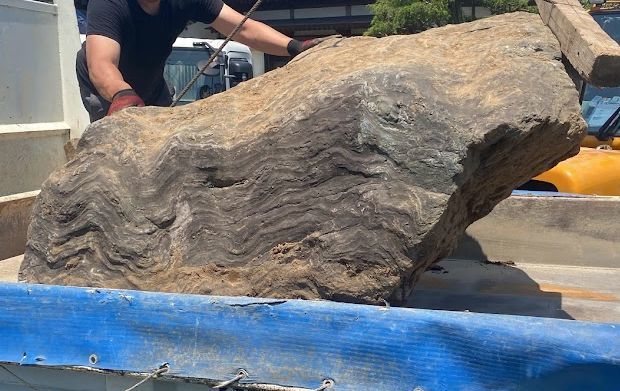 大型庭石は重量が数トンに及ぶ場合もあり、
