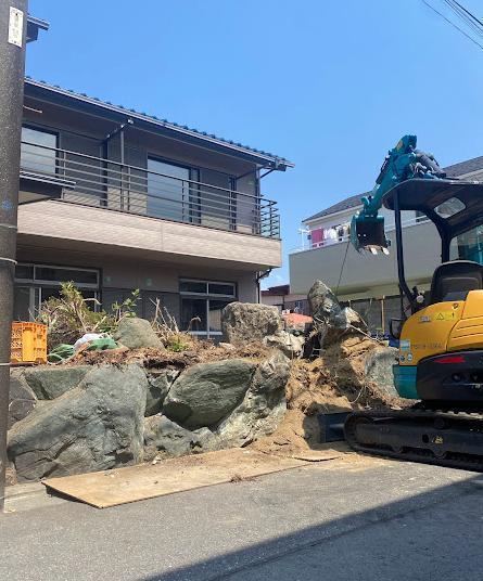 庭石撤去 横浜市港南区|重機不可人力搬出
