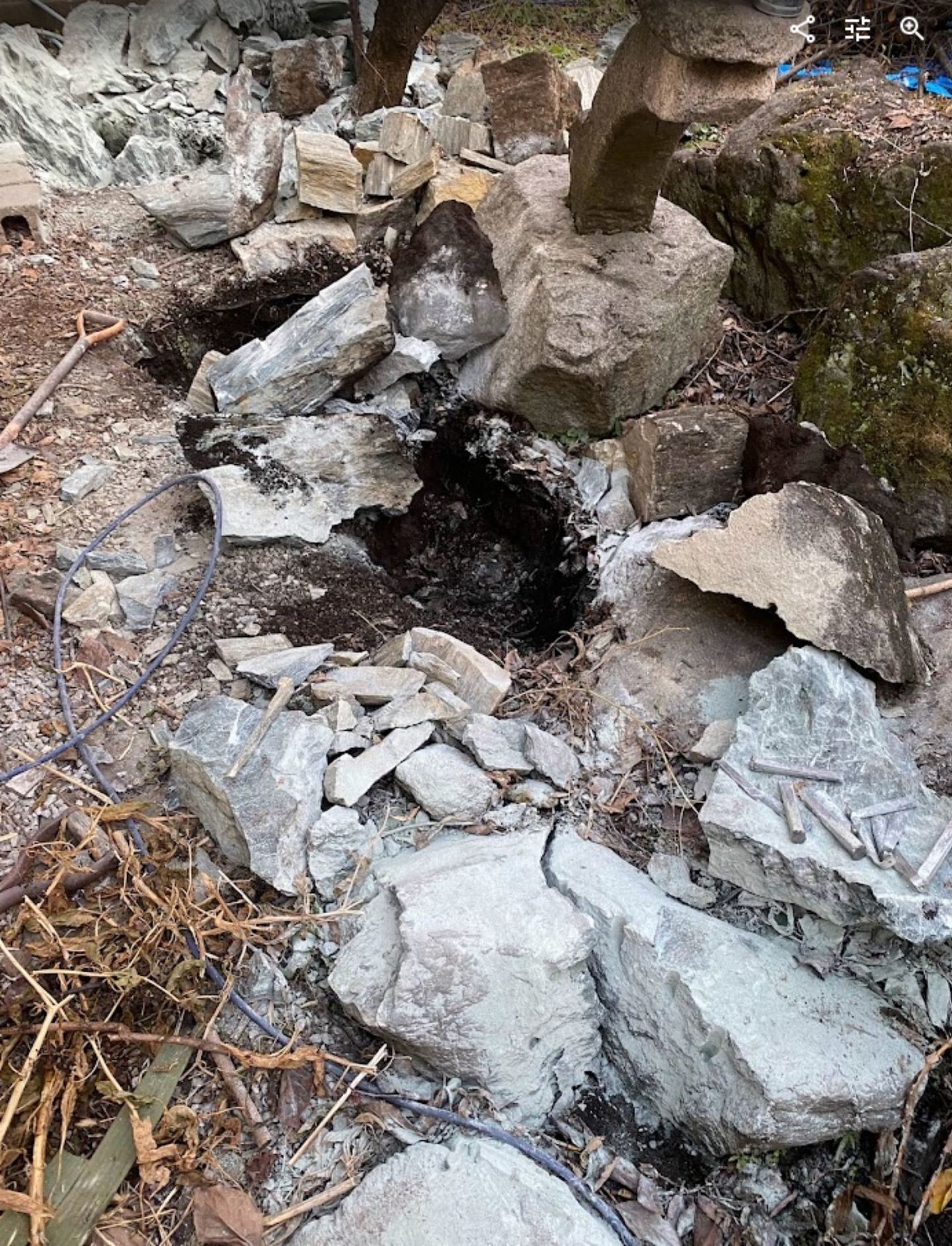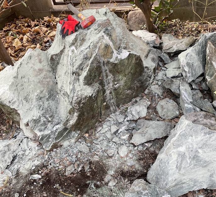 東京都府中市|重機不可の大型庭石撤去(約6t)人力解体・人力搬出事例