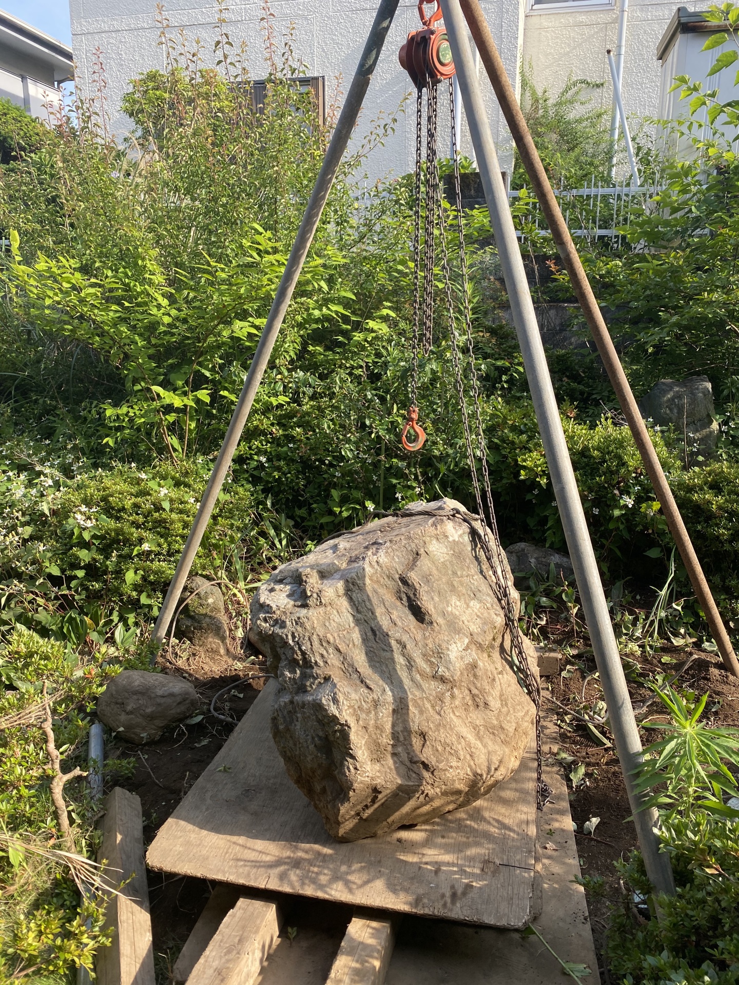 重機不可でも低騒音の庭石撤去、解体