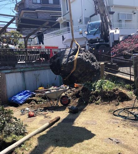 横浜市瀬谷区 大型重機による庭石撤去 施工事例