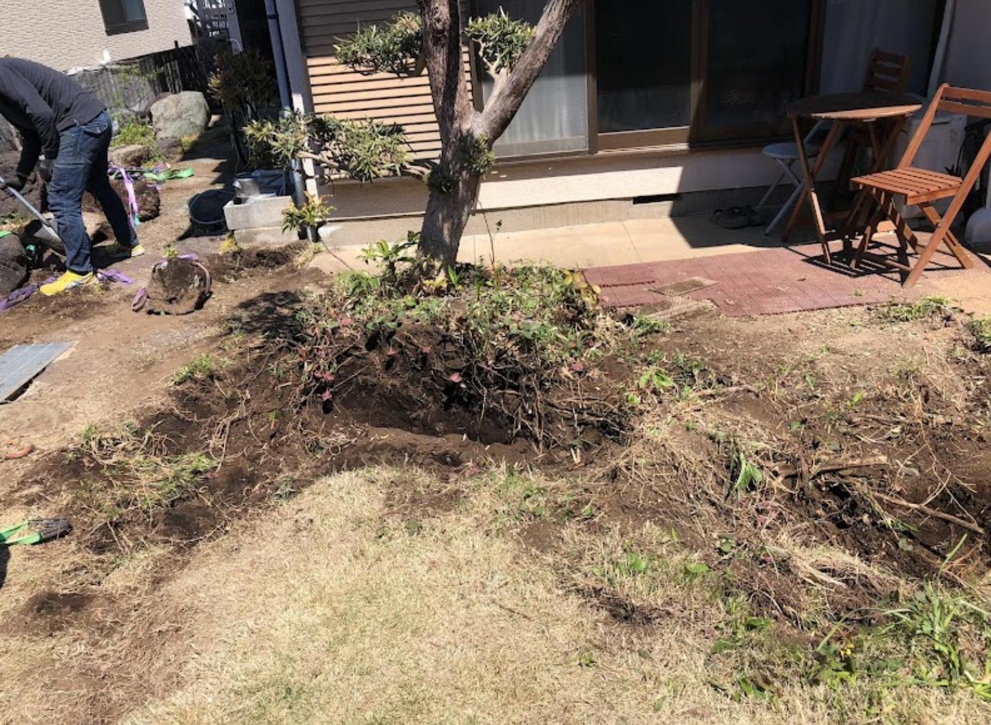 既存の庭木を安全に伐採し、根まで丁寧に撤去しました。