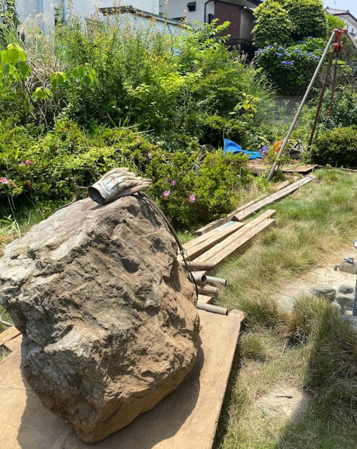 庭石撤去 横浜市港南区|重機不可人力搬出