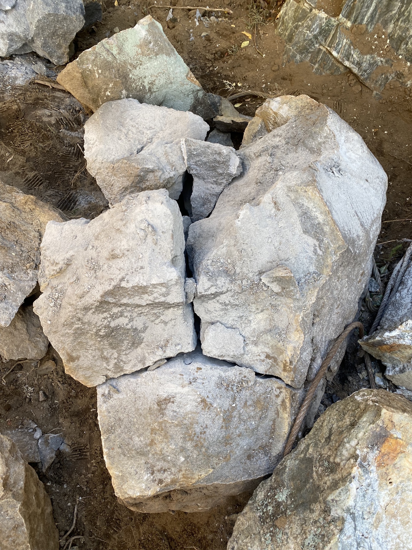 大型庭石撤去|山梨県笛吹市|セリ矢工法で巨石解体