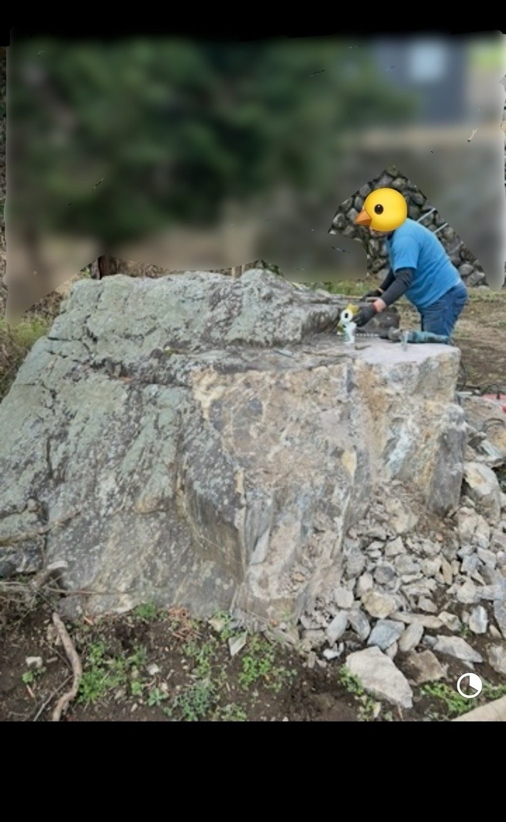 石に穴をあけ、くさびを打ち込み、割る方向をコントロールしながら徐々に分割。