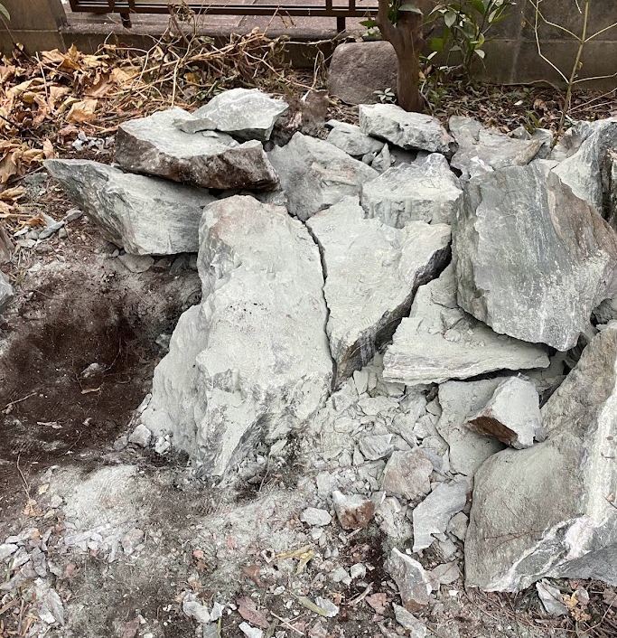東京都府中市|重機不可の大型庭石撤去(約6t)人力解体・人力搬出事例