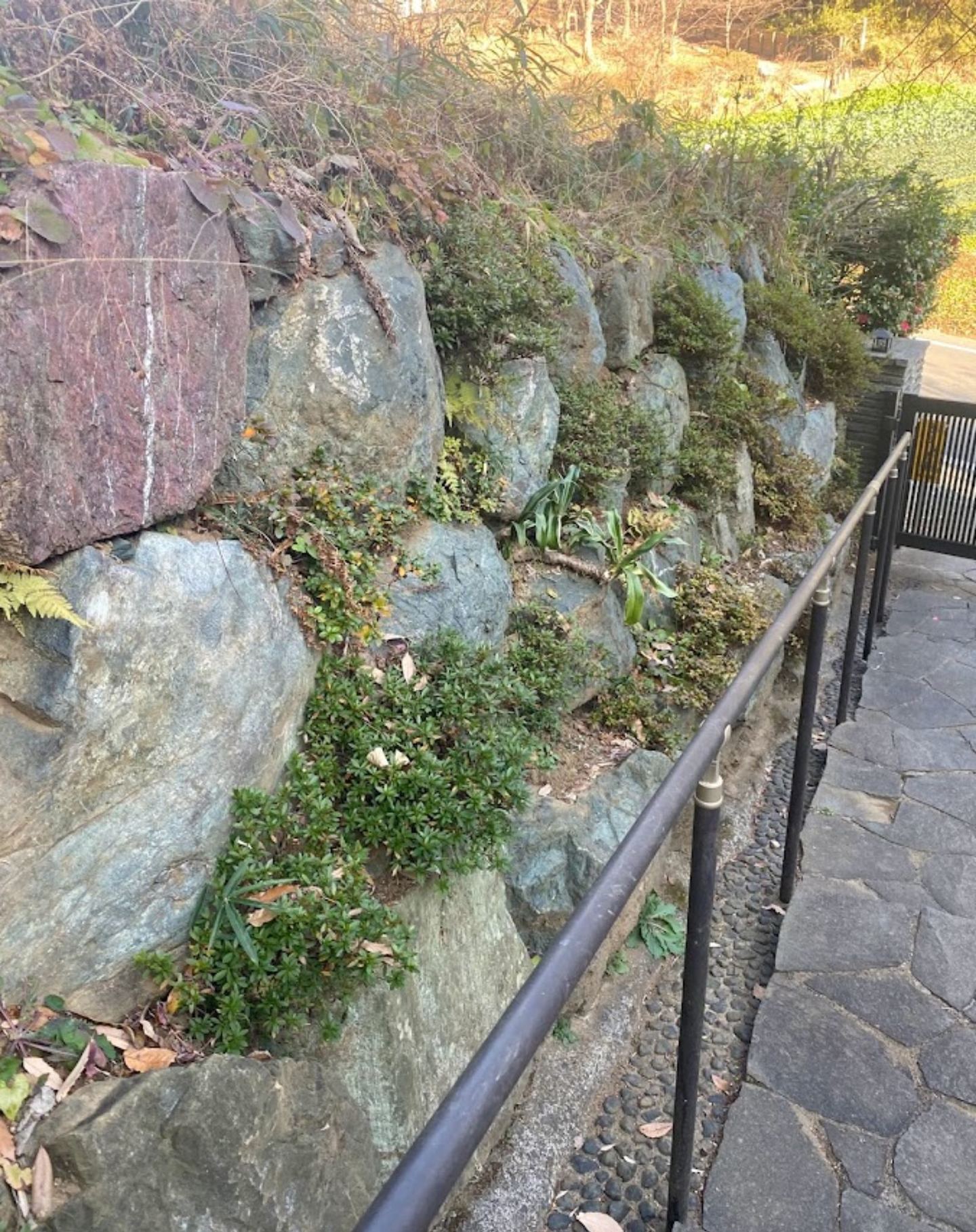 傾斜地に設置された石積み