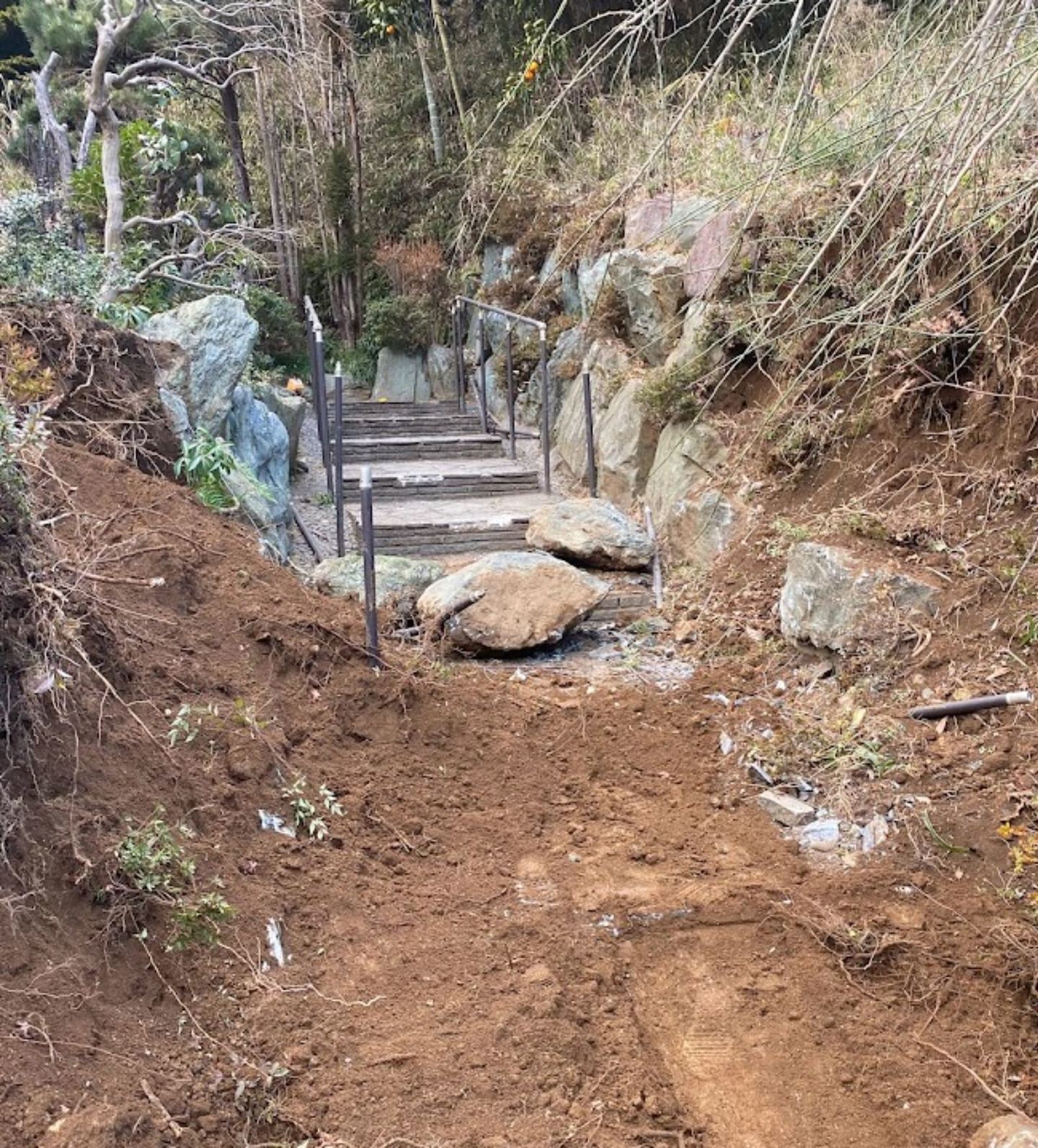 擁壁沿いの石材撤去