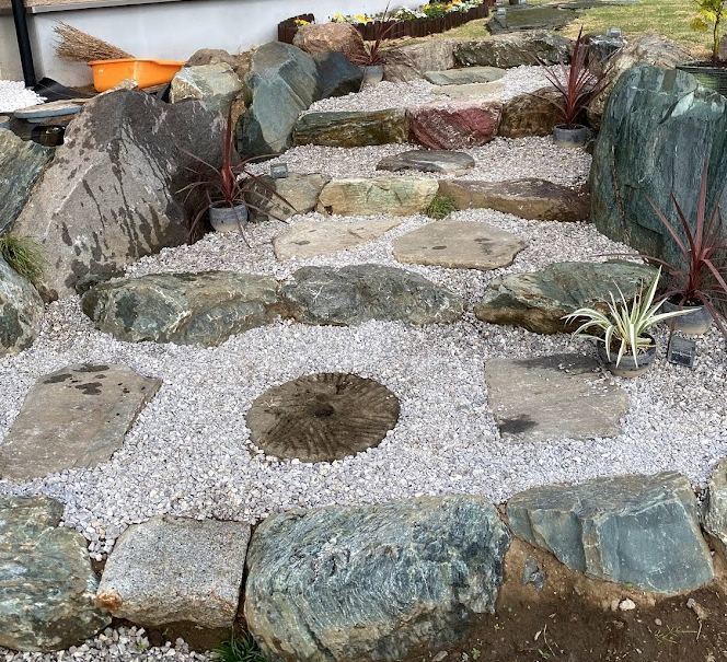 作庭や花壇作り、石積み、ちょっとしたお庭のアクセントなど様々な方法で、比較的多くの庭石を再利用することができるのです。