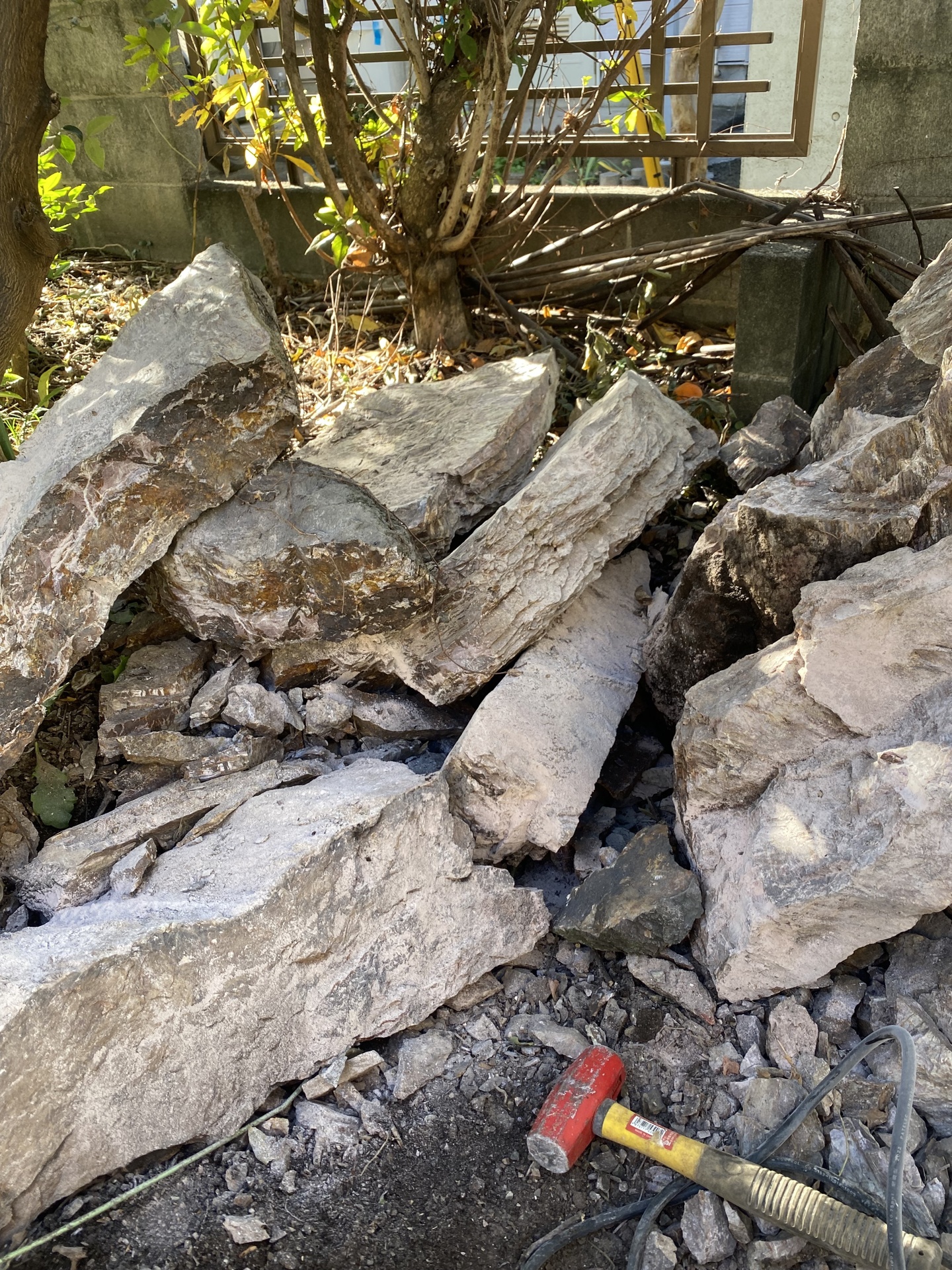 大型庭石撤去|東京都府中市|セリ矢工法で庭石解体